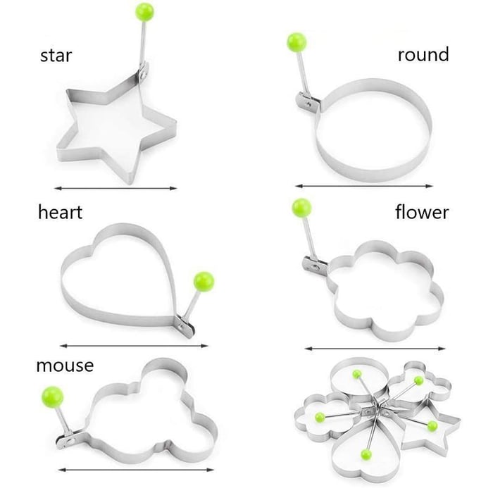 - 🍳【Various Shapes】Pancake mold set has 5 shapes—circles, hearts, mickey, stars, and flowers. They can help you make a different kind of omelet or sandwich, so life is no longer monotonous!